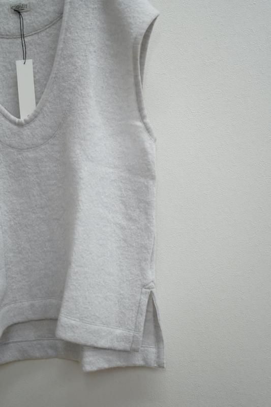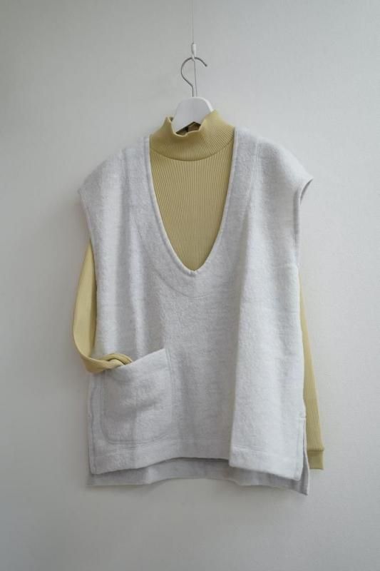 とても軽くふんわり柔らかな温かみのある素材でつくられた深めVネックのベスト。