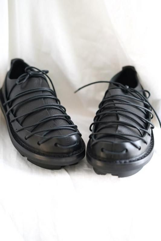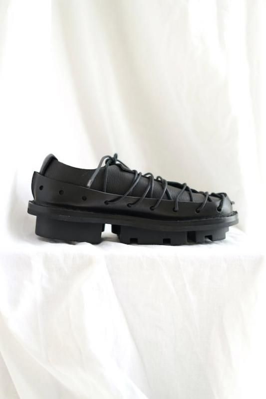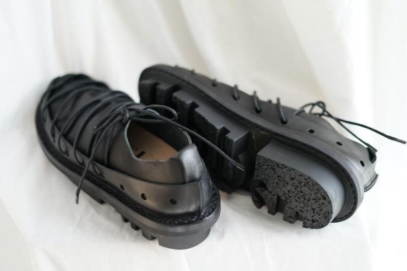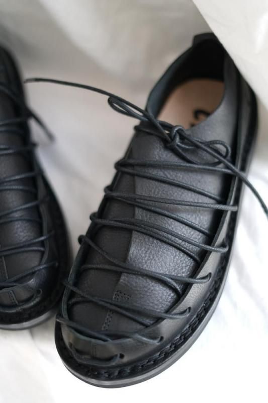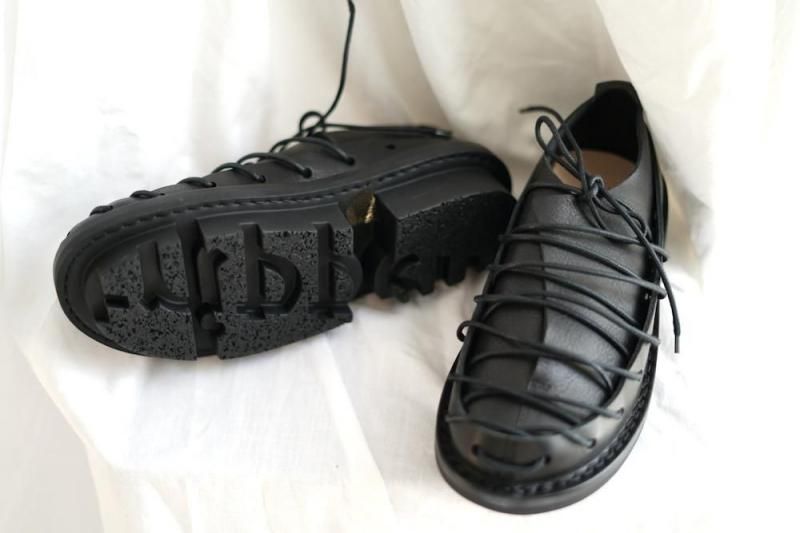 「Closed」コレクション。 耐久性のある解剖学に基づいた形状のソールです。ソール交換可能。 「Trace」は、組成の最大30%を生産余剰からのリサイクルゴムで作られています。 このソールはUNI EN ISO14855規格を満たし、植物毒性がない場合は6か月以内に34,53%の生分解度であることにより、「マイクロプラスチック」の問題について対処しています。 またリサイクルというテーマが、ゴムを粒状にした造りによって外観的に視覚化されています。  レディースサイズのみ展開しています。ソール高3cm。 ゴムソールに含まれる配合剤が表面に現れ、ソールが白く曇ったように見える場合があります。この状態も品質には問題がありませんのでご安心ください。